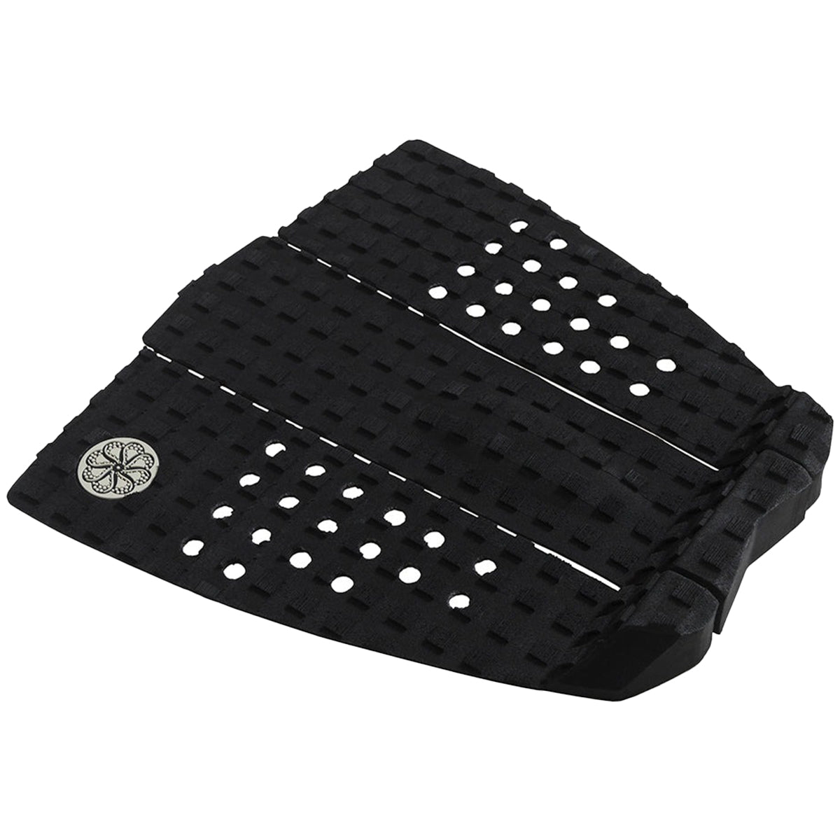 The Octopus Split III Traction Pad is a three-piece design measuring 11.8 by 12 inches, built for dependable grip and board control. It features a domed arch, contoured tail kick, and 30mm height for secure foot placement and added leverage.